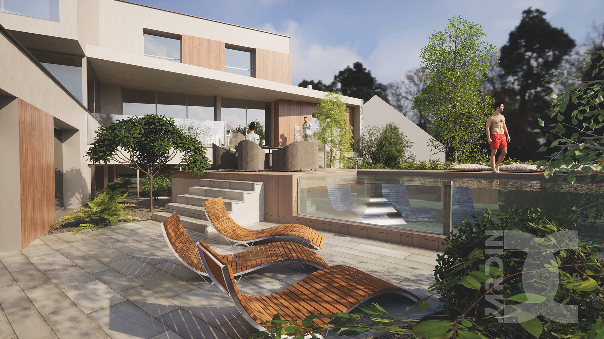 Dans un jardin et piscine contemporains, le bois apporte :